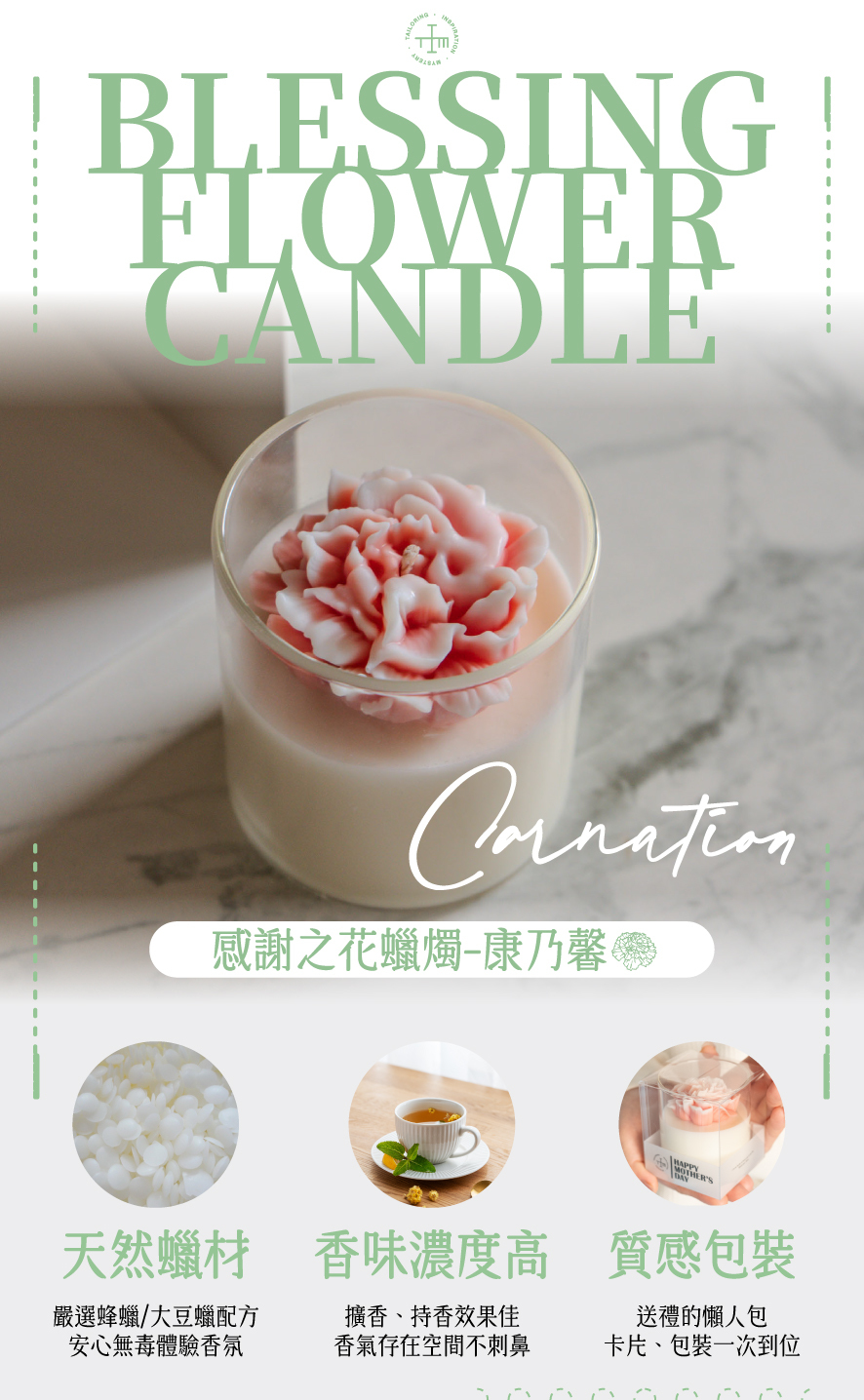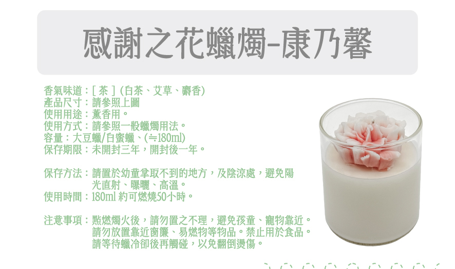 產品名稱:感謝之花蠟燭-康乃馨