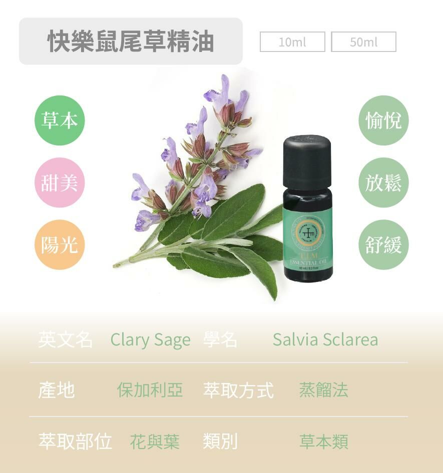 精油:快樂鼠尾草花與葉蒸餾萃取(清澈之眼、耶蘇的眼睛)