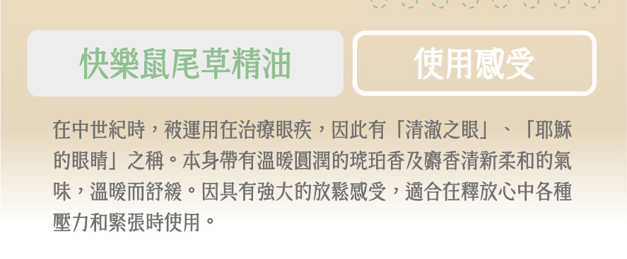 感受:溫暖舒緩帶來放鬆感受,釋放壓力和緊張