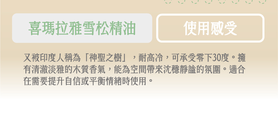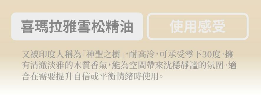 精油:喜馬拉雅雪松木頭蒸餾萃取(神聖之樹)