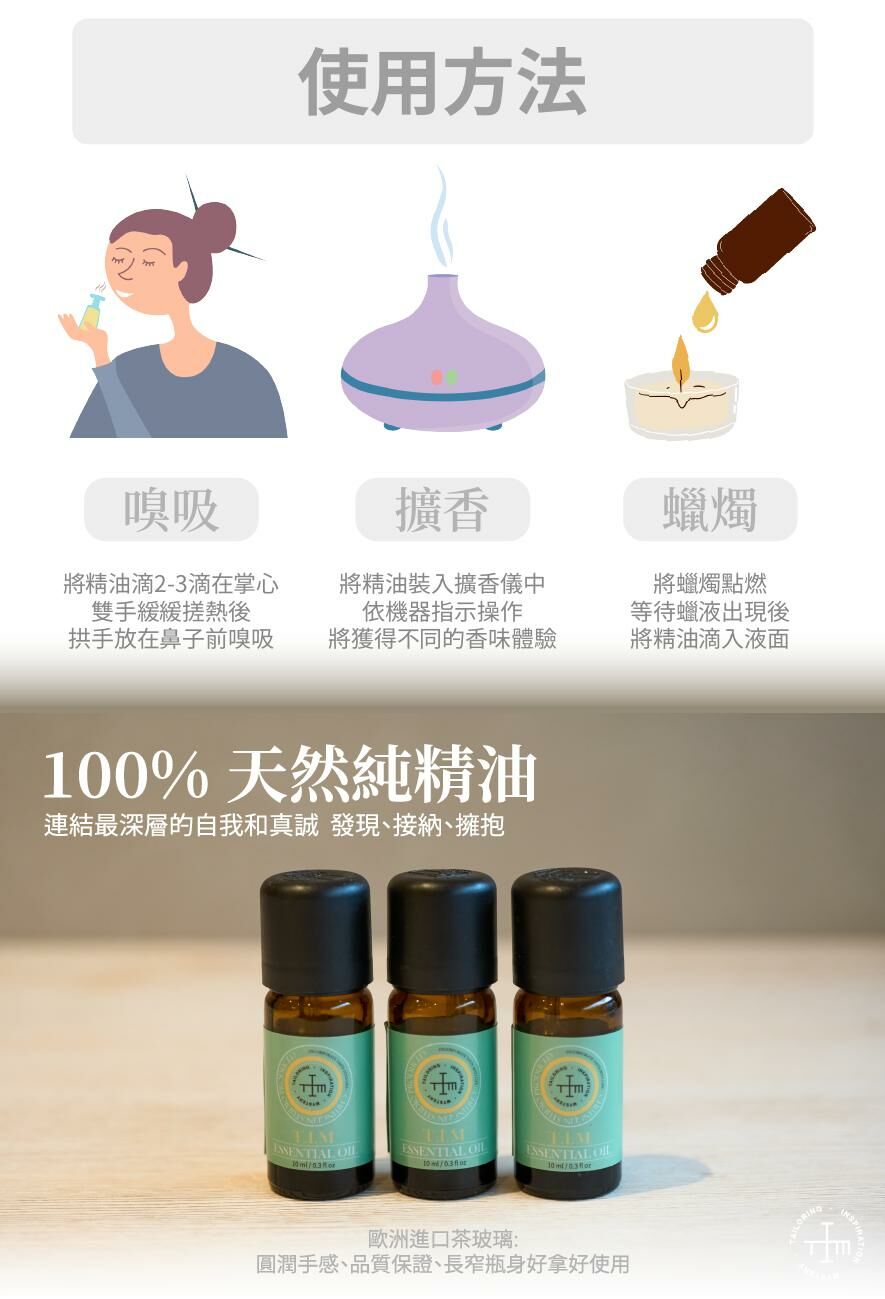 感受:溫和且柔和,用於放鬆或提振精神