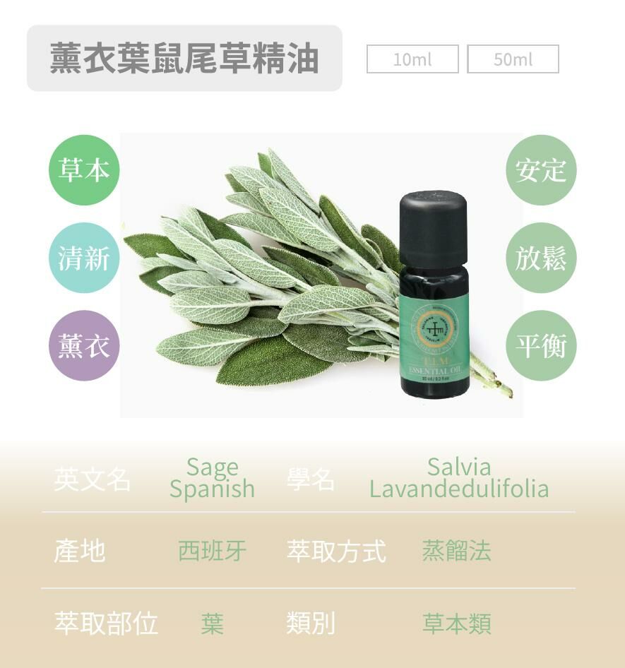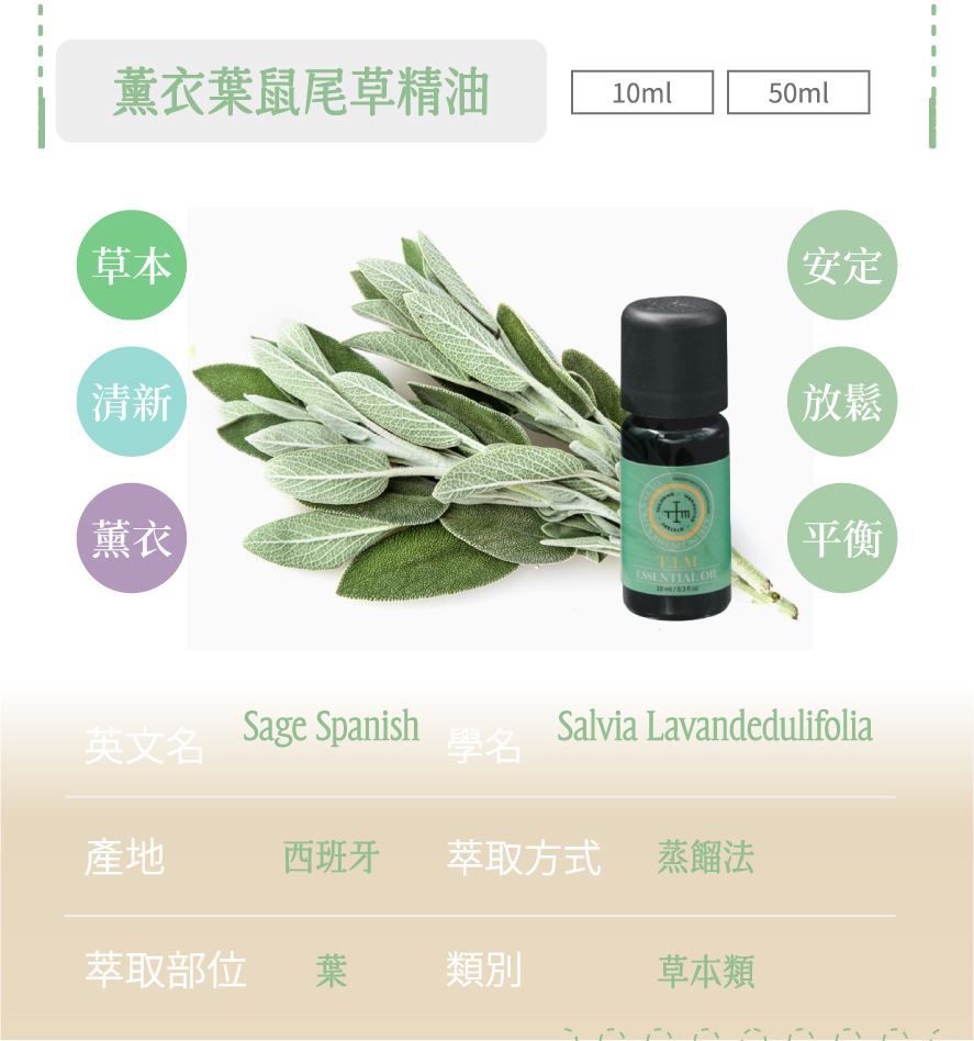 精油:薰衣葉鼠尾草葉片蒸餾萃取(西班牙鼠尾草)