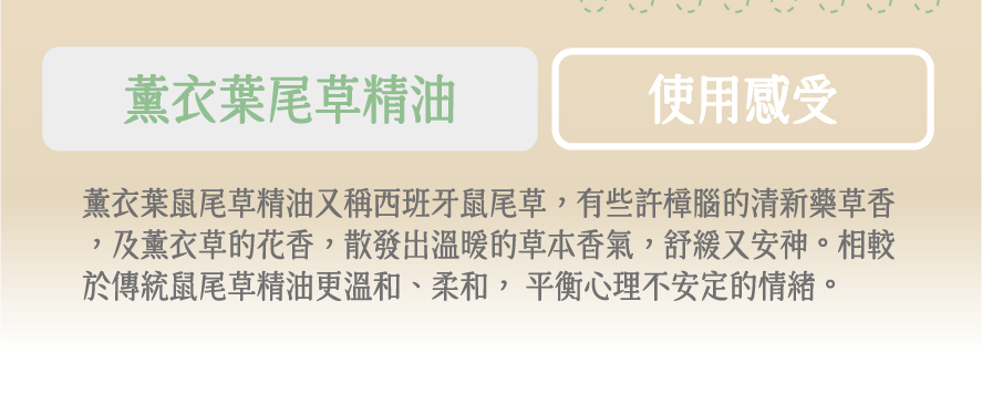 調性:草本調性,帶有樟腦清新藥草香及薰衣草香